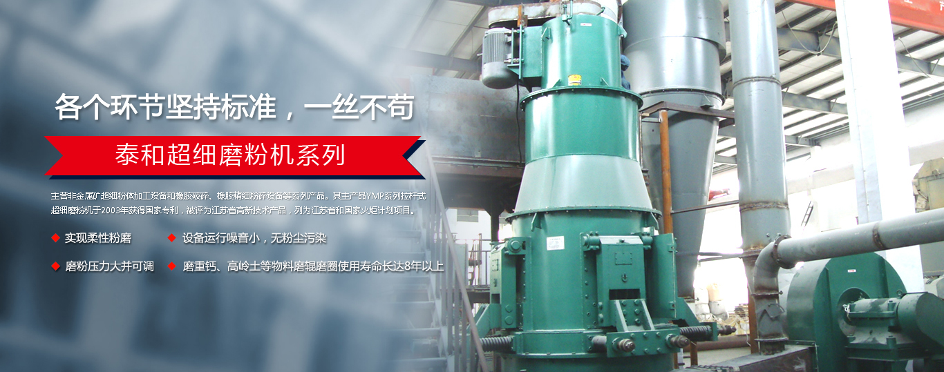 宜興市泰和機(jī)械有限公司是在國家高新技術(shù)開發(fā)區(qū)注冊的一家科技民營企業(yè)。主營非金屬礦超細(xì)粉體加工設(shè)備和橡膠破碎、橡膠精細(xì)粉碎設(shè)備等系列產(chǎn)品。其主產(chǎn)品YMP系列拉桿式超細(xì)磨粉機(jī)于2003年獲